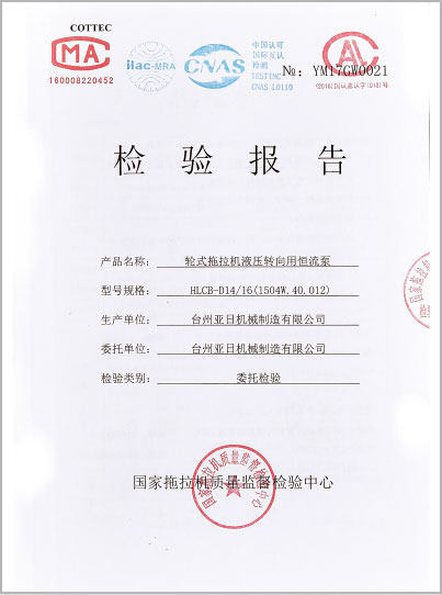 公司技術人員和管理人員齊備,擁有各類制造產品的精加工設備,CAT全電腦測試臺、齒輪檢測中心、三坐標等一系列的檢測設備,建立了完善的齒輪油泵技術測試中心。我公司多次代表參加機械行業標準制定會議,并負責起草和制定JB/T9835.1-2014《農用齒輪泵》和JB/T11892-2014《輪式拖拉機液壓轉向用恒流泵技術條件》等國家標準和行業標準。